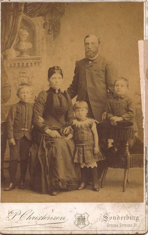 Emigrated from Denmark with his parents (Peter and Helene) and siblings Anna Fredrica (1888–1984) and Peter (1891–1963). After three years living near Paxton, Illinois, the family moved to a farm near Newark, New Jersey. (farm near New Jersey coast, (Bliss pg. 3). Anna later lived in Whitehouse, NJ.